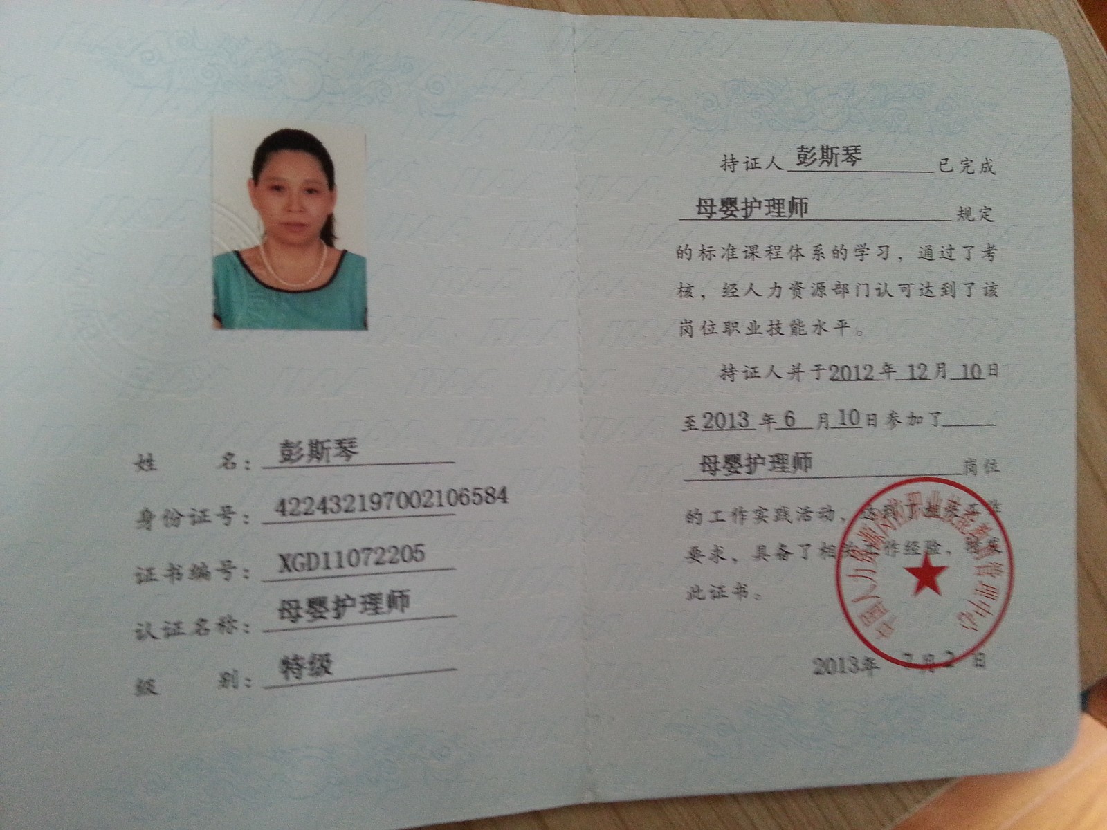 彭阿姨性格温和,和产妇妈妈们都沟通的很好,和家人相处也很不错。她护理工作做的认真细致,对产妇和宝宝都很有爱心,勤劳好学,非常上进,护理过新生儿80多个,带过多对双胞胎早产宝宝经验,是一位很优秀的月嫂!