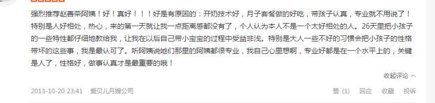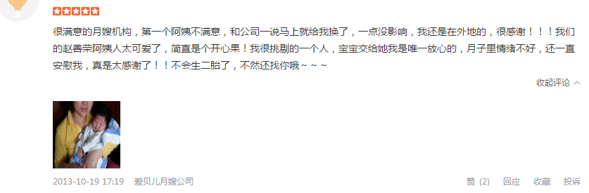 客户评价:经验丰富,护理宝宝专业,疼爱宝宝,关心产妇