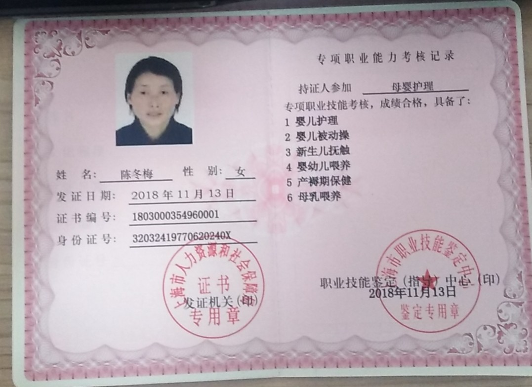 陈阿姨来自江苏,她勤劳肯干,工作踏实,对母婴护理工作从不计较付出,像对自己家人一样付出。
