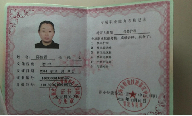 是一位老月嫂阿姨,有非常丰富的月嫂工作经验,在产妇护理,婴儿护理及月子餐等方面都很有经验,也是一个能吃苦肯付出的好月嫂,如果您喜欢开朗热情类型的阿姨,就选陈阿姨吧,没错的!