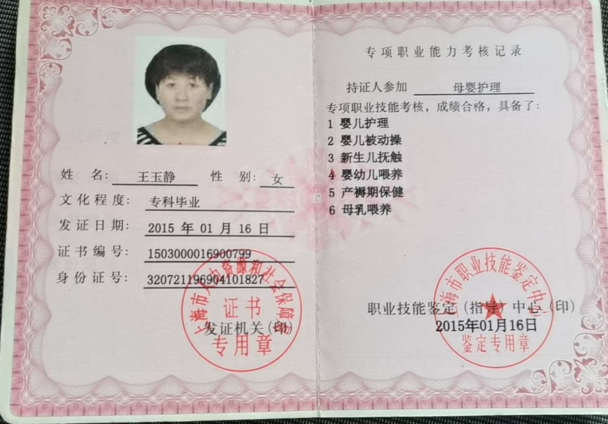 王玉静阿姨有着淳朴厚道、勤劳认真的优秀品质,她对待工作一丝不苟,对产妇宝宝视同己出。多年的工作积累,具备熟练的技能,但阿姨仍然保持着踏实的工作态度,正因此她获得了我们客户的一致好评,客户五星级推荐,公司五星级推荐!