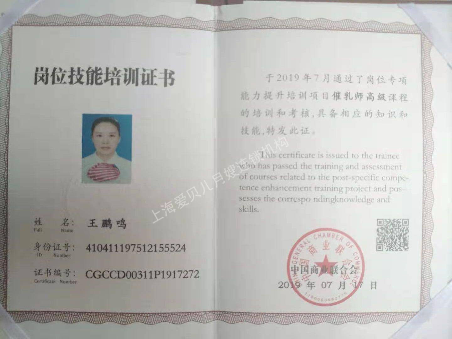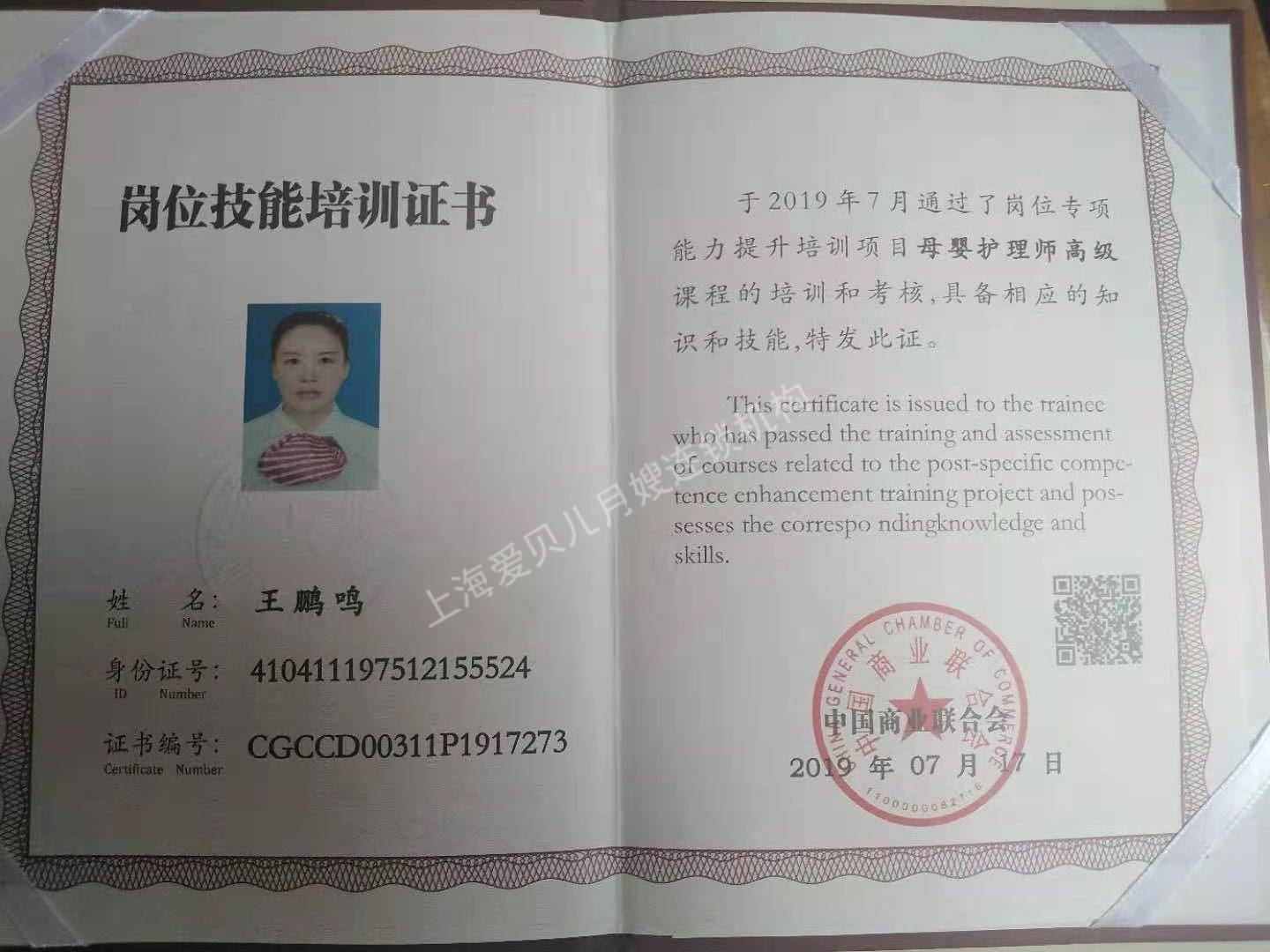技能证书:母婴护理师证、育婴师证、催乳师证。