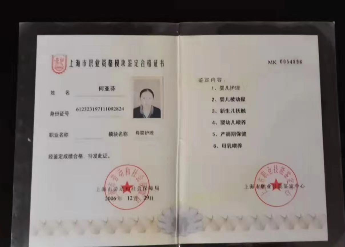 2004年_2022年在上海做月嫂,做了16年多,带了100多个新生儿宝宝 ,